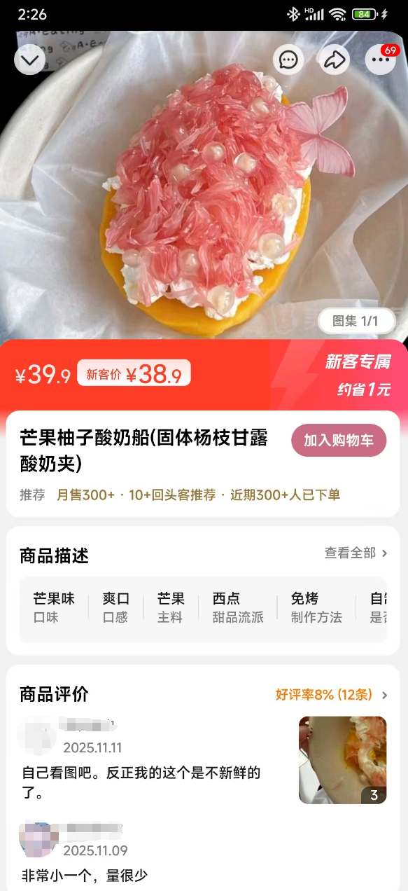 目前,上海也有多家甜品店、蛋糕店上架该产品,定价普遍介在38元至45元之间,部分门店铺销量已突破300单。